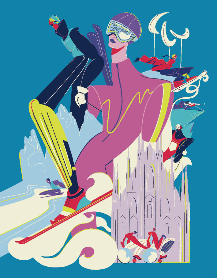 Auf dem von Carolina Atvilla gestalteten Poster für Milano-Cortina ist eine weibliche Athletin prominent zu sehen. Bei den Paralympics sind Frauen aber in der Minderheit.
